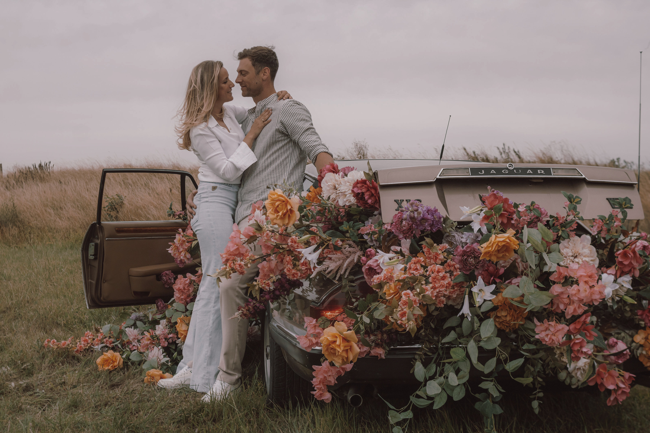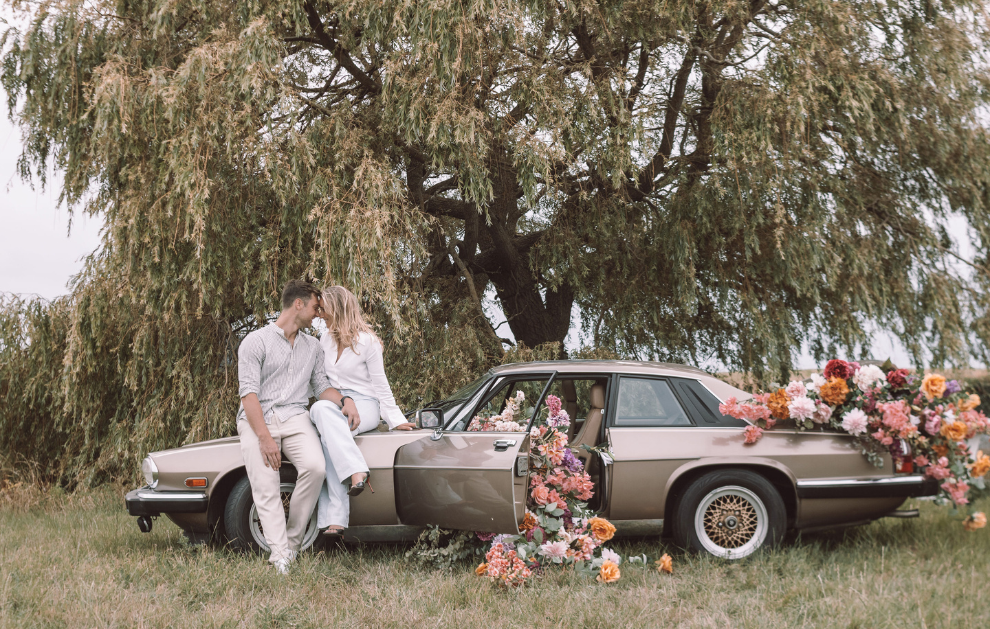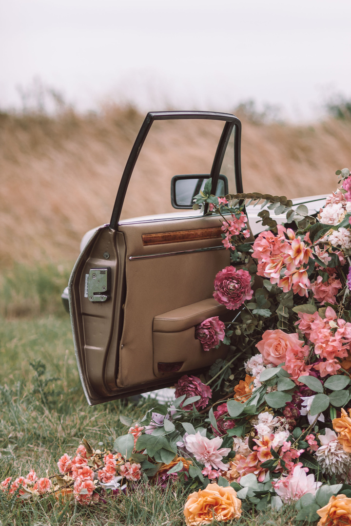 De ‘Rock baroque’ floral art installation is een echte ‘one of a kind’ in zijn soort. Je gasten zullen verrast worden door deze unieke creatie. De authentieke vintage golden jaguar werd helemaal overspoeld met zijden bloemen en kan schitteren aan de inkom van jouw event om de sfeer onmiddelijk te bepalen. Romantisch met een vleugje rock’ and roll!