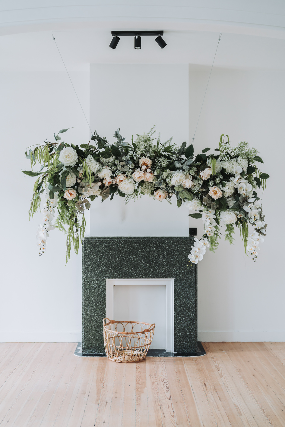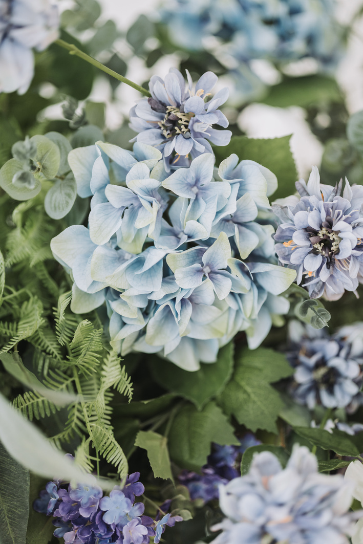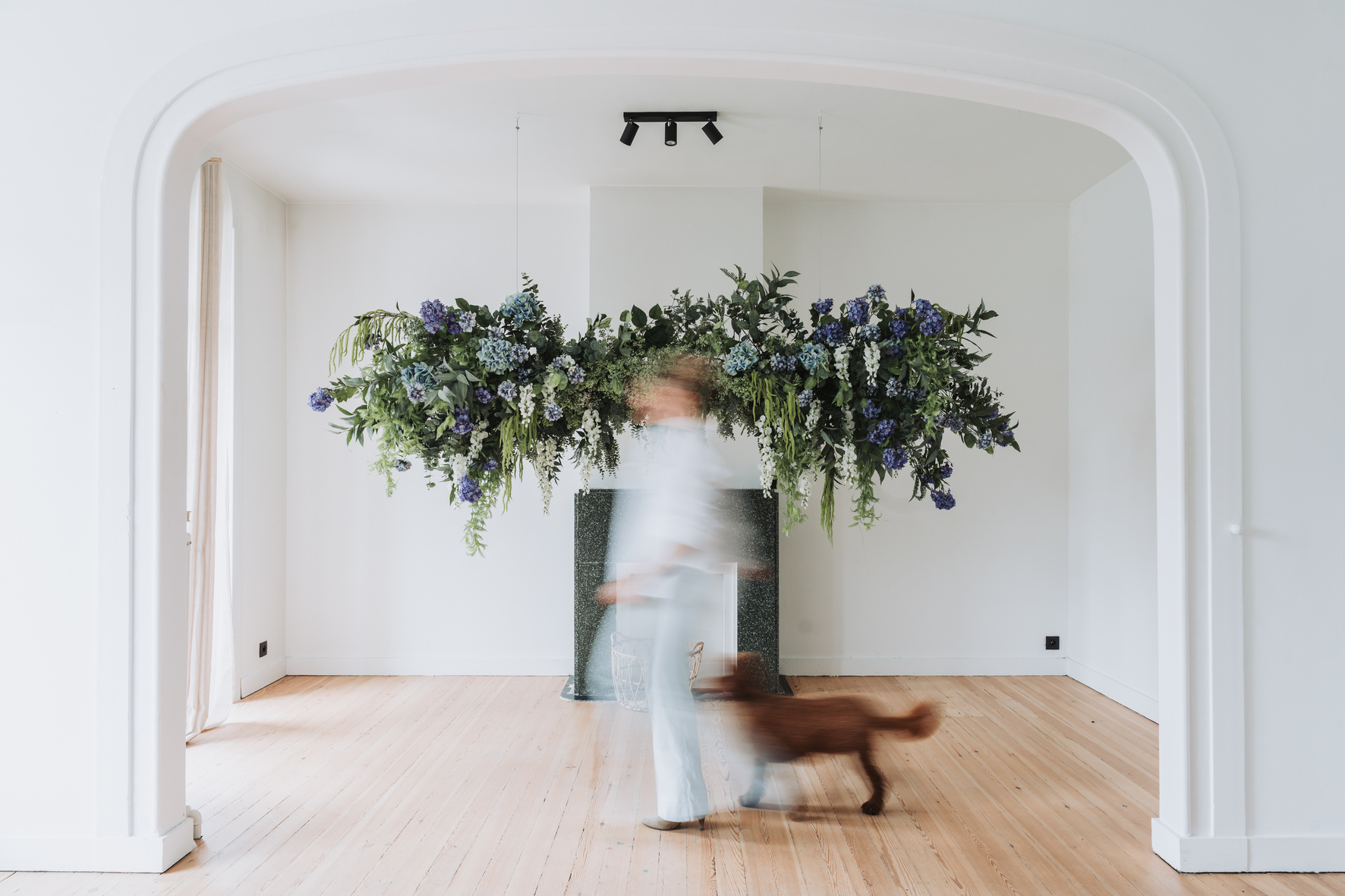 Something old, something new, something borrowed, something blue. Wij zijn helemaal in love met deze prachtige mediterraans getinte flowercloud. Deze floral art installation is een van de absolute pronkstukken uit onze collectie. De cloud is weelderig gevuld met de mooiste zijden bloemen en kunsttakken. Met de ‘something blue’ flowercloud ben je verzekerd van een statement piece of art waar je nog lang van zult nagenieten!